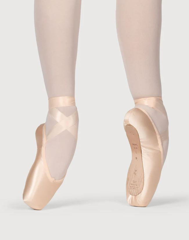 The Serenade Strong pointe shoe is an option for the dancer requiring a shoe that offers optimum lateral support and control of the foot. The reinforced shank/insole aids in strengthening the metatarsals whilst providing a snug and streamlined fit towards the back of the heel.